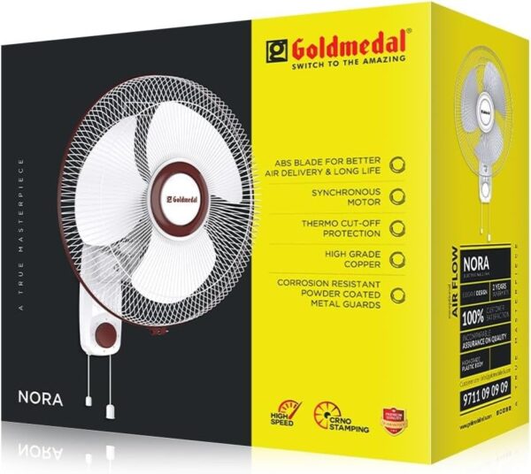 Goldmedal 300mm Wall Fan Nora offers efficient cooling with a sleek design, adjustable tilt, and three-speed settings for personalized comfort. Ideal for homes and offices, it ensures optimal airflow while saving space.